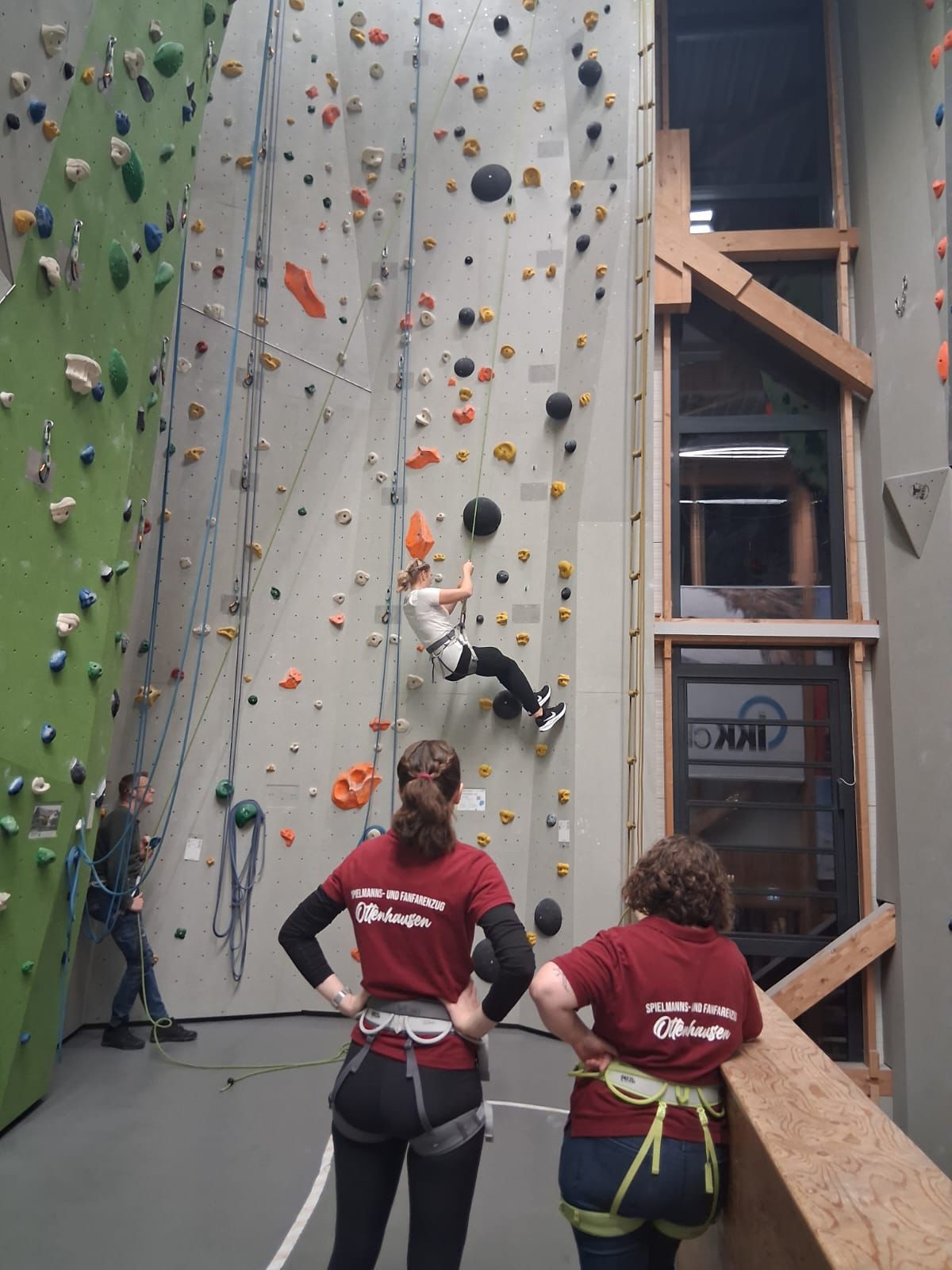 Ein besonders schöner Moment war, als unsere älteste Spielfrau, die derzeit ihre letzte aktive Saison spielt, mutig die Wand erklomm und mit einem Lächeln aus luftiger Höhe winkte.